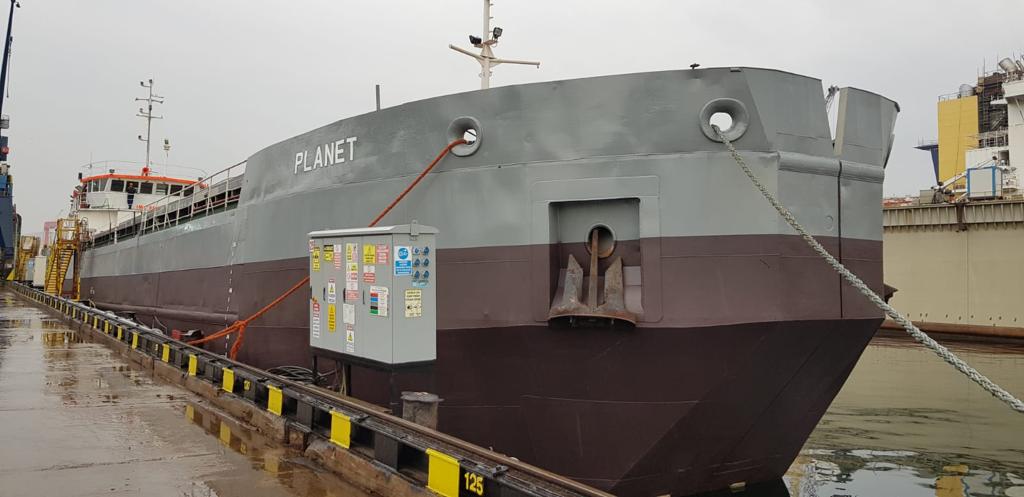 Planet vessel, formerly used as a fruit carrier. It was converted into a split barge vessel in line with the requested works.